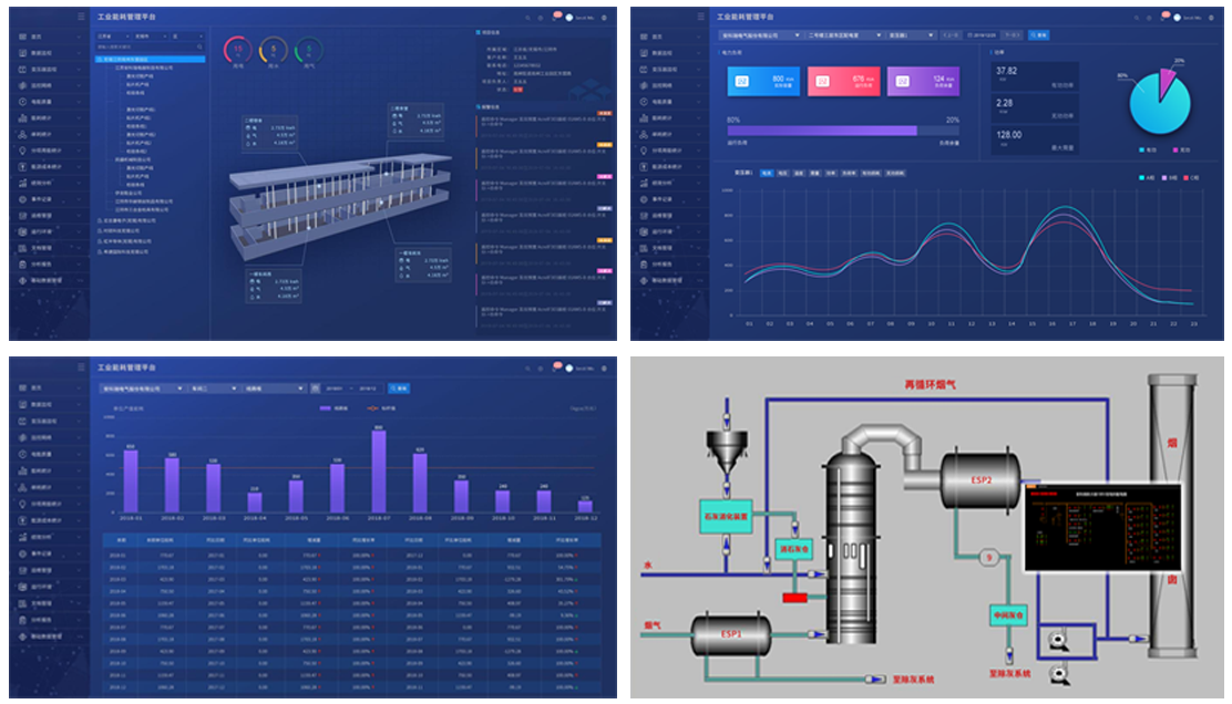 系统采用自动化、信息化技术和集中管理模式,对企业的生产、输配和消耗环节实行集中扁平化的动态监控和数据化管理,监测企业电、水、燃气、蒸汽及压缩空气等各类能源的消耗情况,通过数据分析、挖掘和趋势分析,帮助企业针对各种能源需求及用能情况、能源质量、产品能源单耗、各工序能耗、工艺、车间、产线、班组、重大能耗设备等的能源利用情况等进行能耗统计、同环比分析、能源成本分析、用能预测、碳排分析,为企业加强能源管理,提高能源利用效率、挖掘节能潜力、节能评估提供基础数据和支持。